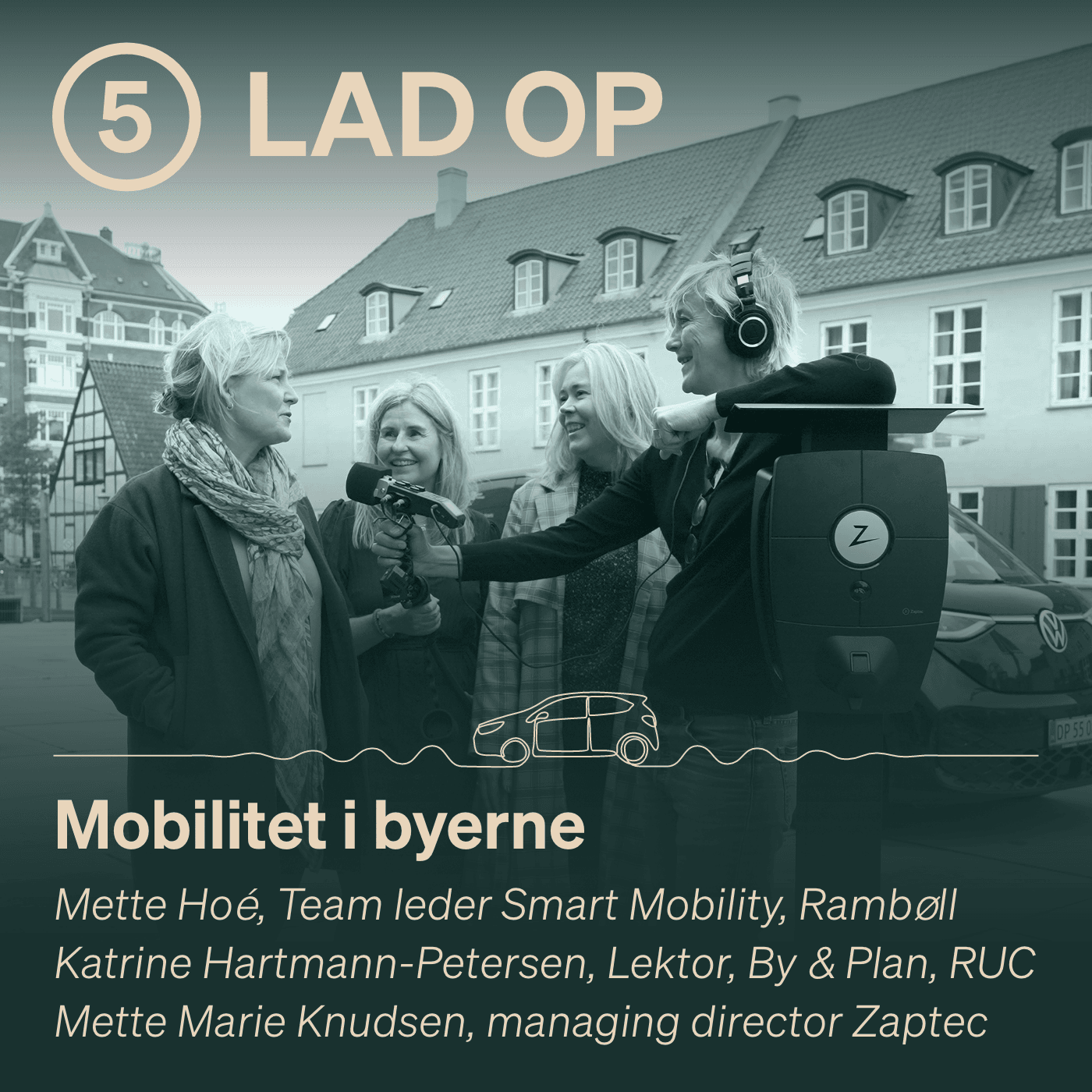 Mette Marie Knudsen fra Zaptec inviterer gæster på en køretur i det rullende elektriske podcaststudie. Målet er at blive klogere på den grønne omstilling af transporten i Danmark.