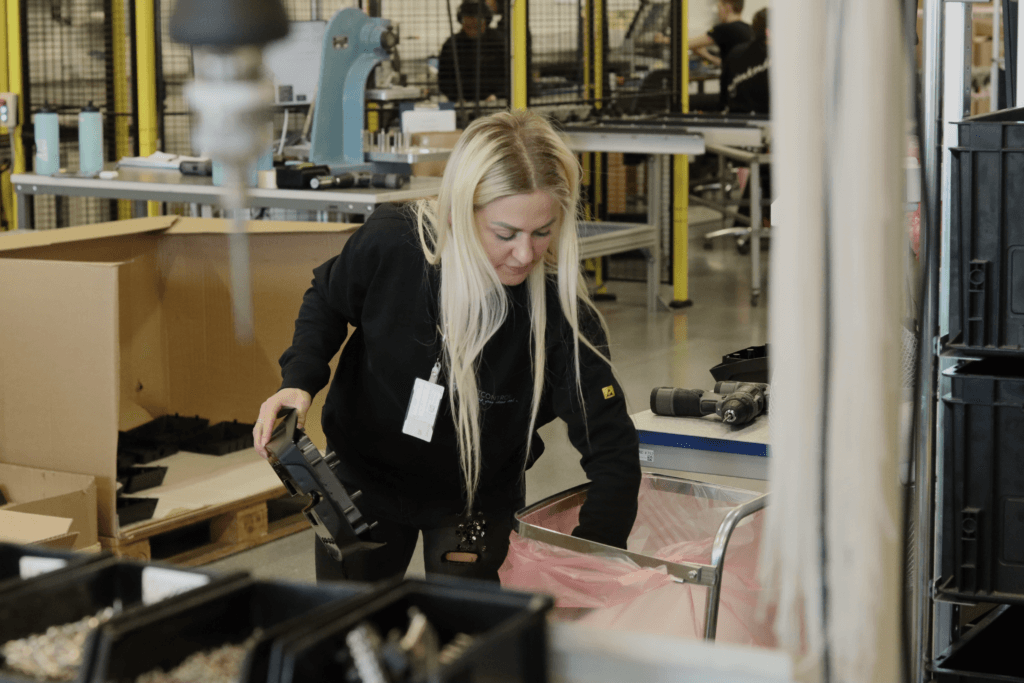 Chez Westcontrol, les employés se déplacent progressivement entre les différentes stations de travail, dont chacune est spécialement conçue pour une partie spécifique du processus de production. Pendant une journée de travail, une même personne peut tout réaliser, de l’assemblage manuel à l’inspection et à l’emballage. La variété des tâches et la cohésion sociale sont souvent évoquées lorsqu’on s’entretient avec des employés.