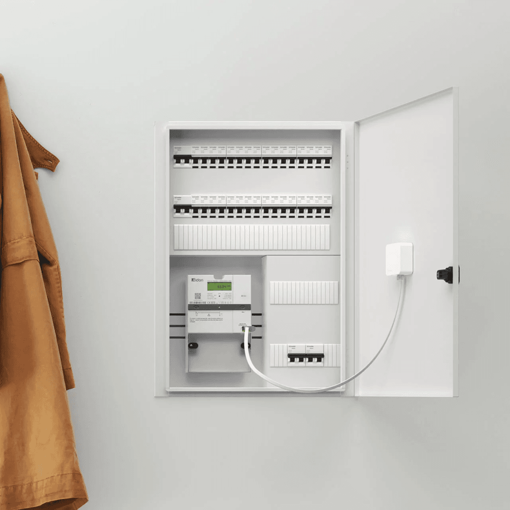 Werkt samen met uw meterkast, leest het energieverbruik van uw gebouw en reguleert de laadsnelheid om het maximale uit de beschikbare energie te halen.