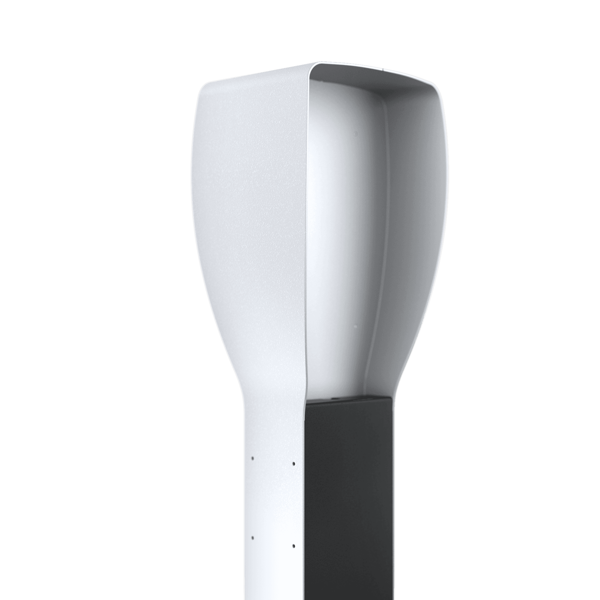 - De paal is voorzien van een poedercoating met een matgrijze afwerking.
